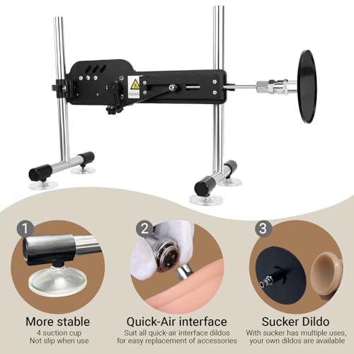 Secure and Stable Design: The automatic thrusting machine includes 4 powerful suction cups with upgraded anti-slip technology, ensuring stability during use. This prevents any displacement or vibration, providing a secure foundation for intense sessions. Comes discreetly packaged with 3 realistic dildos and compatible suction cups for diverse play options