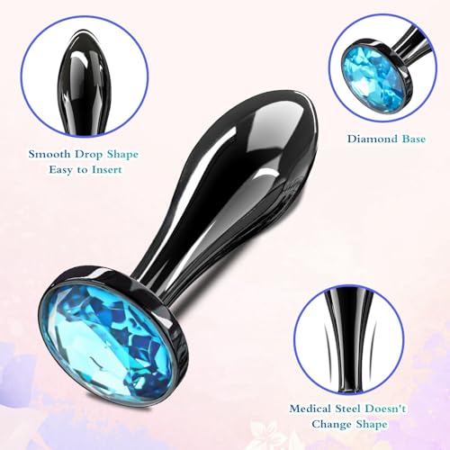 Small Anal Plug Adult Sex Toy for Beginner, Jewel Small Butt Plug Stainless Sex Anal Toy – G Spot Anal Sex Adult Toy for Beginner Adult Unisex Women and Men Couple (Blue)