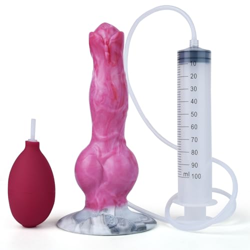 Interesting Squirting Dog Dildo: with knotted shaft and strong hands-free suction cup, with 30ml suction bulb and 100ml syringes can realistically simulate ejaculating, suitable for beginners.