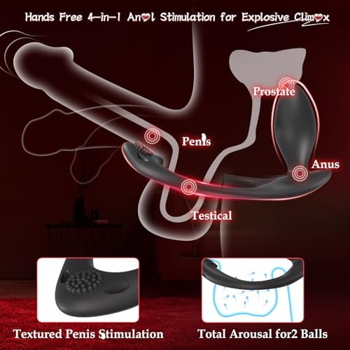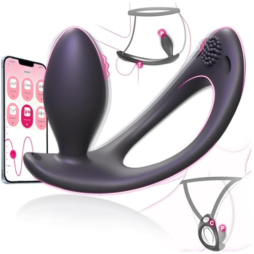 Strap On Vibrating Anal Butt Plug, Hands Free Male Women Couples Adult Anal Sex Toys, App Prostate Massager Testicle Sex Toy for Men, BDSM Female Wearable Anal Dildo Vibrator with Clitoral Stimulator
