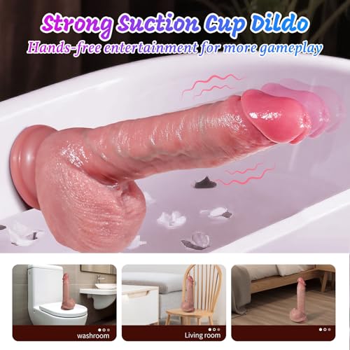 【Strong Suction Cup Hands-Free Dildo】- This strap on dildo couple sex toy comes with powerful suction cups. You can use it on any flat surface and it will stick firmly to smooth surfaces such as bathrooms, kitchens, bedrooms, wooden doors, tables, walls and floors. This is a reasonable hands-free dildo that frees your hands, allowing you to unlock more sexual postures and experience the excitement from different angles.