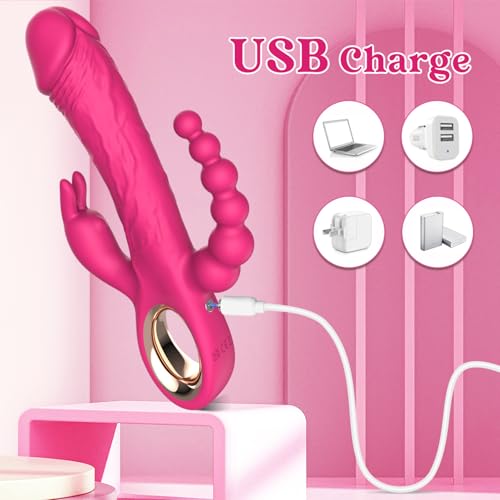 Thrusting Rabbit Vibrator for Blended Full-Body Pleasure, with G Spot & Clitoral Stimulation for Pinpoint Ecstasy, and an Ergonomic Handle for Effortless Control