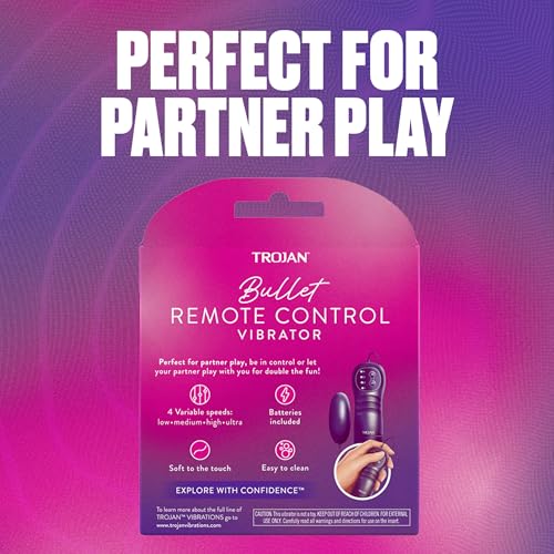 TROJAN Vibrations Bullet Personal Massager gives you multi-speed vibrations that let you vary the speed and explore. TROJAN’S most powerful vibrator has four variable speeds: low, medium, high and ultra. This personal massager is perfect for solo or partner play. You and your partner can enjoy multi-speed stimulation with this high quality, soft-touch vibrator that is easy to clean. It also comes with two AA batteries so the fun doesn’t have to stop. Includes one TROJAN Vibrations Bullet Personal Massager. From condoms to vibrators to lubricants, TROJAN Brand is dedicated to delivering innovative, high-quality products that offer pleasure and protection. More Americans trust TROJAN Brand than any other condom, for over 100 years, because we’re committed to investing in public health efforts to support sexual health. The TROJAN Brand promotes a safe, healthy, and fun sex life.