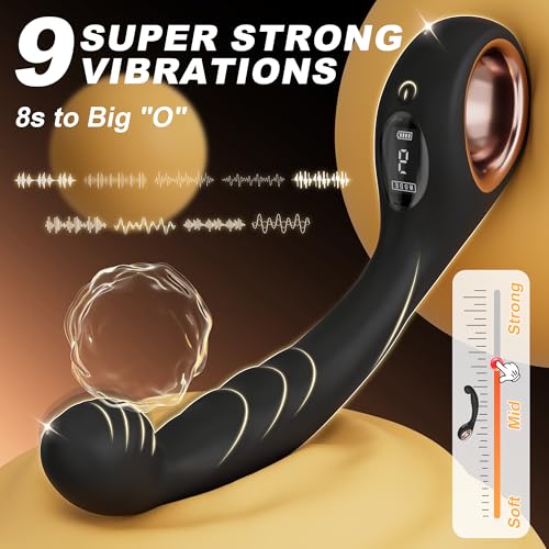 Vibrating Prostate Massager Anal Vibrator – Laphwing Prostate Wand Anal Dildo G Spot Vibrator with Ring Handle, 9 Vibrating Butt Plug Curved Slim Finger Stimulator Sex Toys for Gay Men Women Couple
