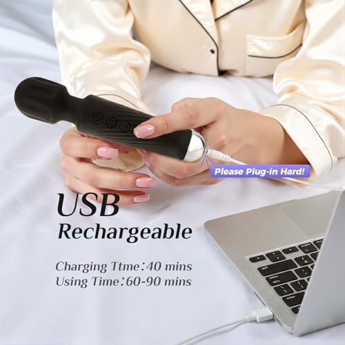 Vibrator Wand Vibrators | Sex Toys Vibrator Dildo for Women | Adult Toys with 20 Patterns & 8 Speeds, USB Rechargeable Vibrating Clitoral Stimulator Sex Toy | Gifts for Women (Black)