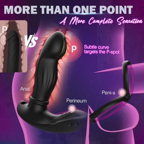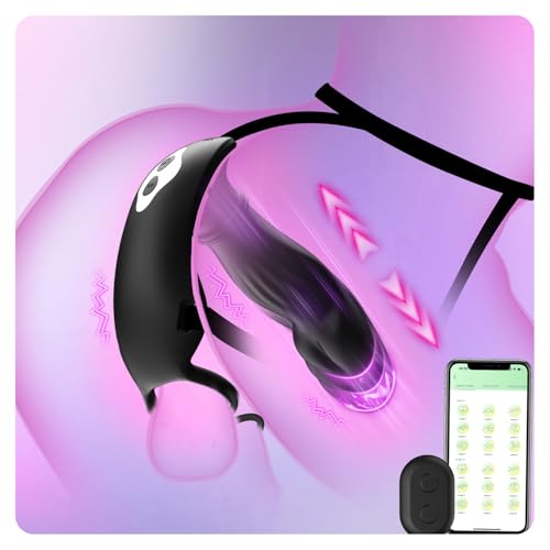 Wearable Thrusting Prostate Massager Anal Vibrator, Strap On Vibrating Anal Toys for Men with Silicone Cock Ring, Hands Free Male Sex Toy Prostate Stimulator with Remote Control and APP