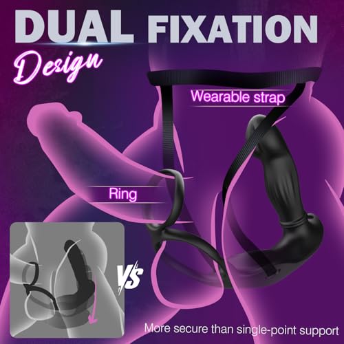 Dual Fixation for Maximum Stability. The integrated soft cock ring and adjustable wearable strap work together to keep the device securely positioned during movement or longer sessions. Designed as prostate massage anal toys for men, the dual-fixation design reduces readjustment and ensures smooth, uninterrupted stimulation.